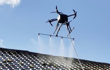 Nettoyage de façades, toitures et panneaux solaire avec drones.